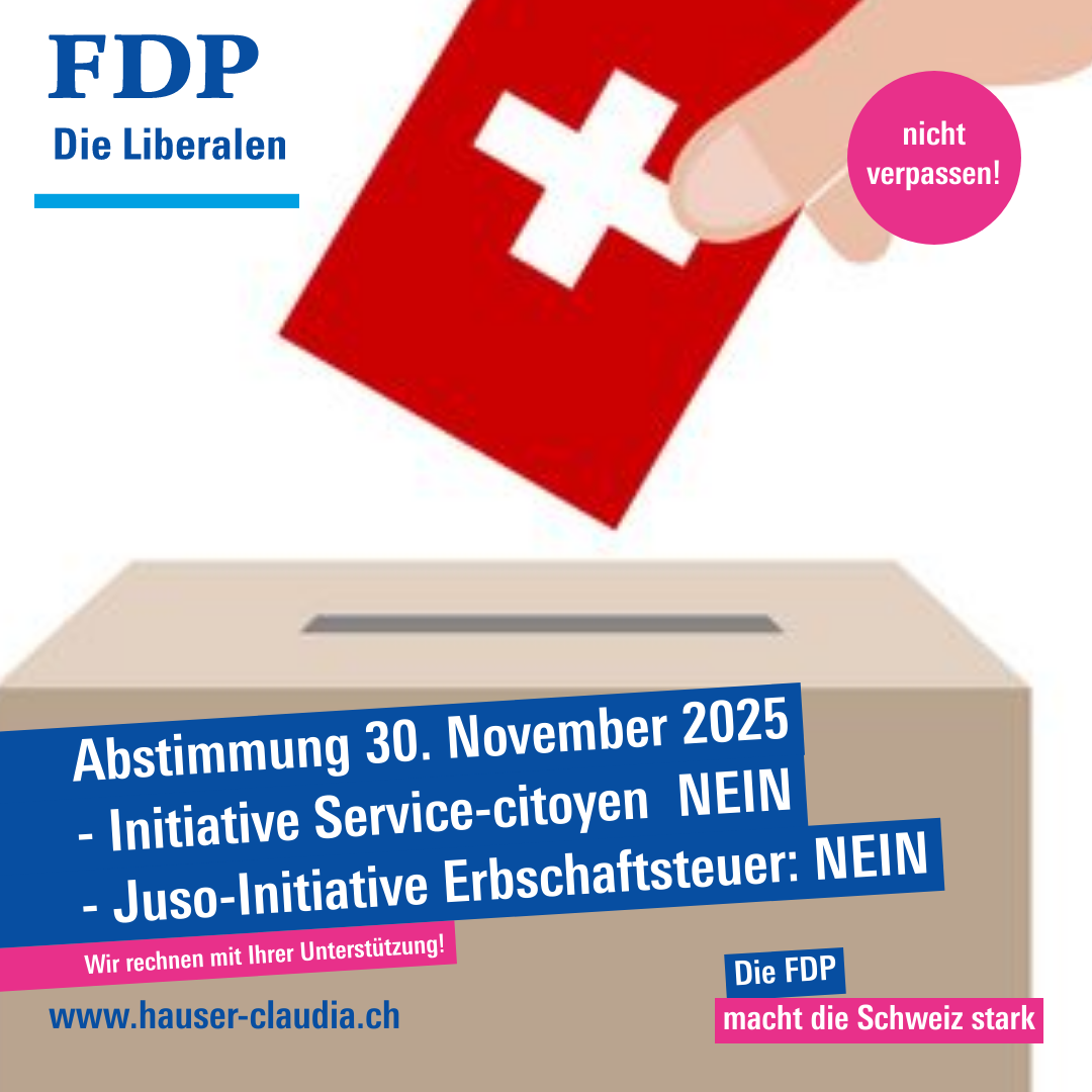 (ef) Noch bis zum 30. November bleibt Zeit, die Stimmzettel zu den beiden eidgenössischen Volksinitiativen Erbschaftssteuer und Service Citoyen einzureichen.